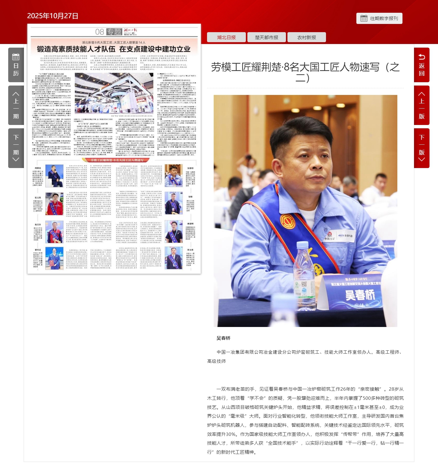 《湖北日报》报道中国一冶大国工匠吴春桥