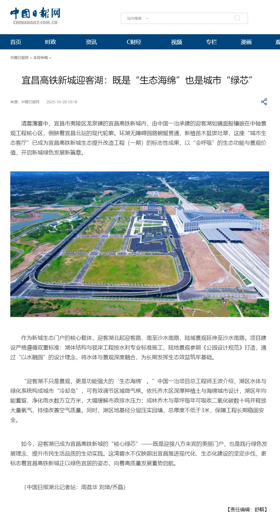 中国日报网:宜昌高铁新城迎客湖:既是“生态海绵”也是城市“绿芯”