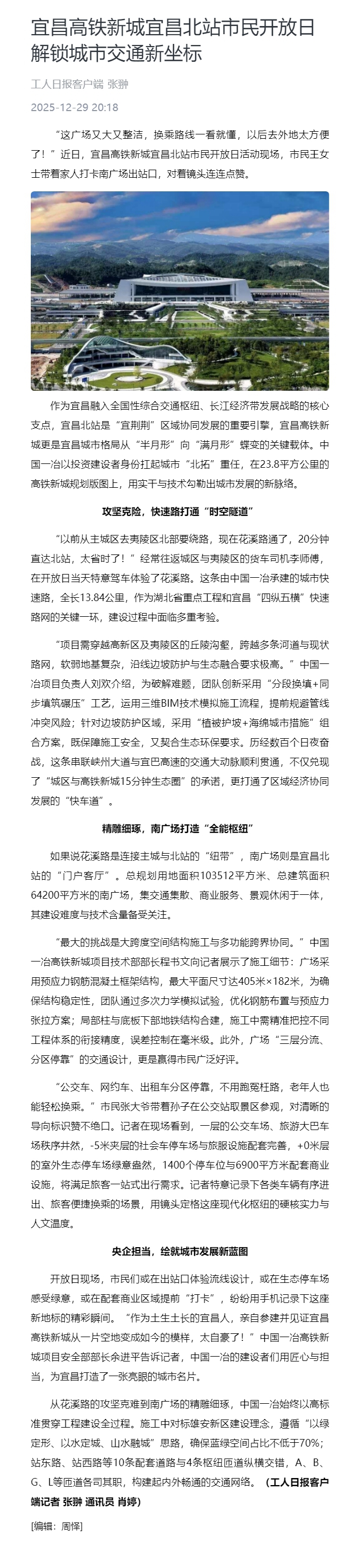 工人日报:宜昌高铁新城宜昌北站市民开放日解锁城市交通新坐标