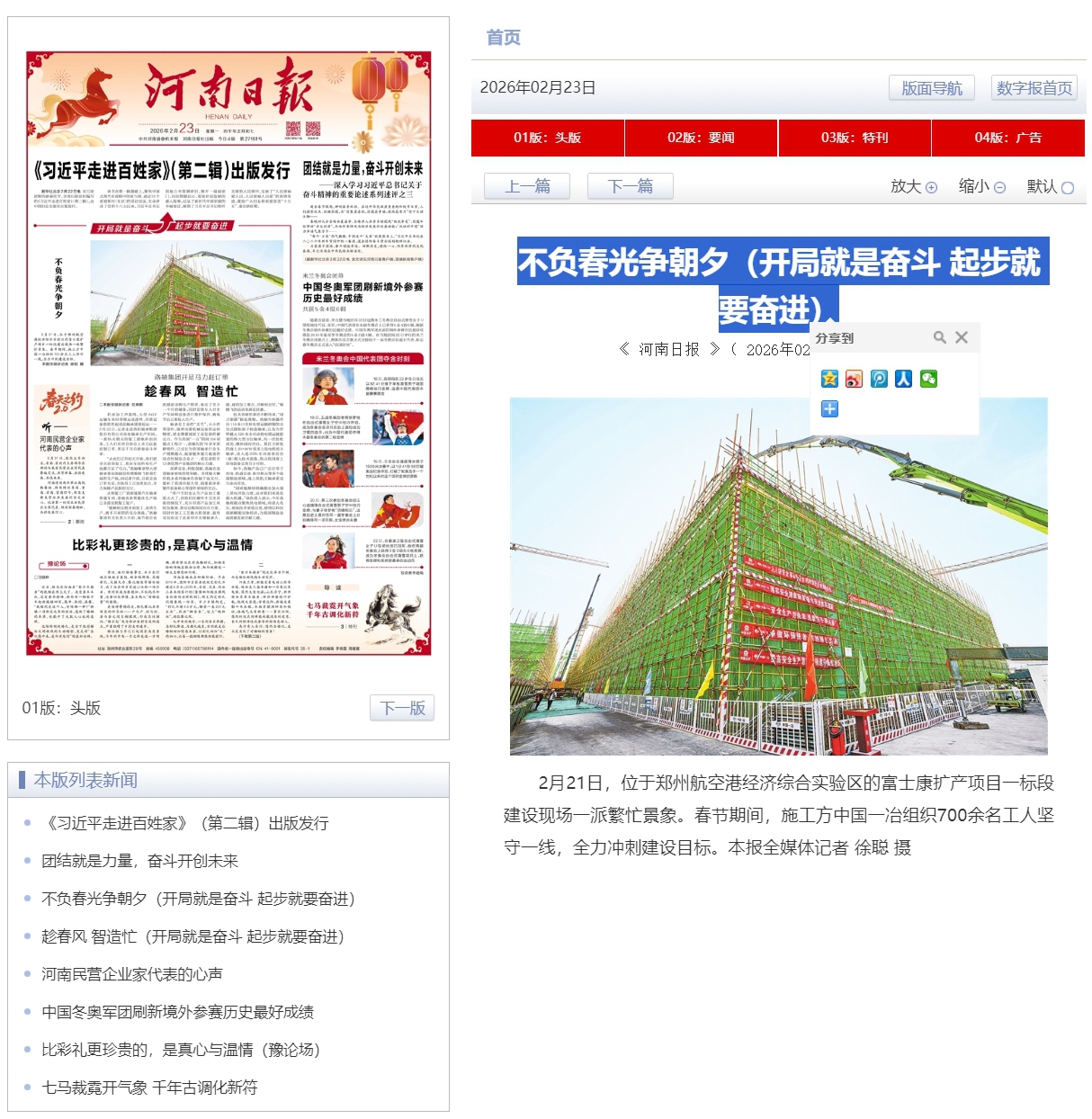 河南日报:不负春光争朝夕 开局就是奋斗 起步就要奋进