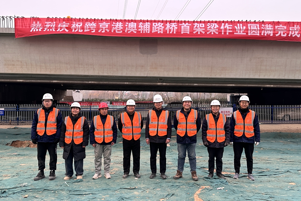 12月11日,中国一冶天津分公司邯郸市王安堡村互联互通工程项目跨京港澳辅路桥首片预制箱梁成功架设。