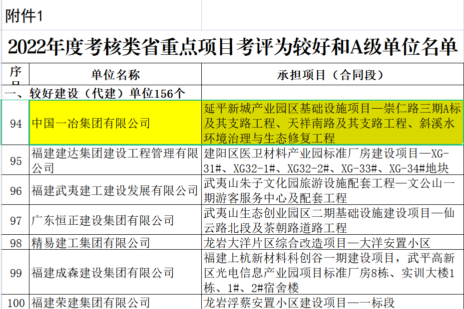 3月19日,经福建省发展和改革委员会评定,中国一冶福州公司承建的延平新城产业园区基础设施项目在2022年度省重点项目参建单位工作业绩评定中,业绩评定为A级。