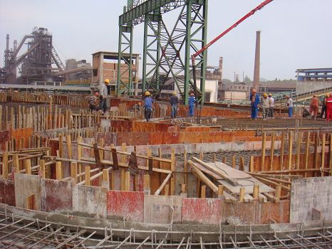 该出铁场面积约2500平米,分为七米砼梁和十米砼平台,分为两次浇灌。铁水沟、冲渣沟、风口平台都积于此处,埋件、螺栓安装量较大其施工工艺较为复杂。建安涟钢项目部在克服雨季和高温天气的同时,合理安排人力、物力组织施工,另一方面抓紧落实变更签证手续。在较短的时间内完成钢筋加工320多吨、普通砼量900多立方、耐热砼332立方,得到甲方的高度赞扬。