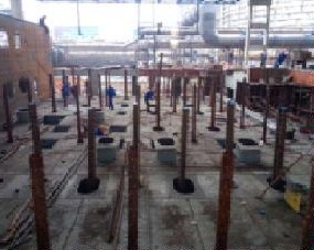 柳钢5号棒材加热炉炉底钢结构由炉底立柱、纵梁、组合梁、裙罩和铺板组成,支撑着整个加热炉钢结构、管道以及耐材的重量。其施工关键在于焊接质量和标高的控制,为确保这一控制目标的实现,项目部全体管理人员精心组织,严格管理。在安装前进行安全技术交底并做好记录,确保安装过程中一切正常。在安装过程中,要求分包单位认真做好各项准备工作,严格按照图纸施工;同时项目部严把安全、质量关,与业主检查员积极配合,加强检查力度,发现问题及时整改,所有到场设备认真清点数量,在甲供设备到货不及时的情况下,项目部不等不靠,提前做好设备安装准备工作,将现场道路进行平整、场地进行规划,确保道路畅通,保证设备到货后能够及时安装。