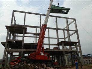 筛分室内设有两台冷矿筛。分别为一次筛和二次筛。一次筛位于9米平台,筛分粒度为5毫米;二次筛位于6米平台,筛分粒度为10毫米、20毫米。两台冷矿筛中隔振装置、筛箱分别为19吨、24吨,需吊装高度为23.5米。集团机电机装项目部根据现场现有吊车与实际现场情况决定用120吨液压吊完成吊装。同时为了能够安全吊装将筛箱拆除一部分减轻重量,最终顺利完成吊装。 (魏蕾蕾、余永朋)