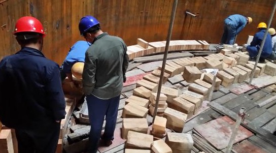 5月5日,由集团工业炉公司承建的贵州黔桂天能焦化90吨/小时干熄焦干熄室冷却区衬砖开始砌筑。