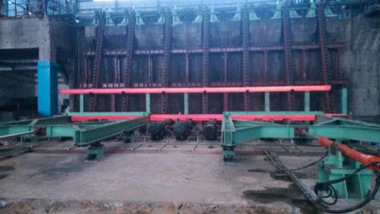 该高线加热炉热送提升区设备改造工程为技改工程,施工范围包括设备拆除、基础破除、设备修配改、基础重做及电缆铺设、调试。绝对工期22天,工期短、任务重、涉及专业多、施工条件有限。业主单位在此过程中仍要上钢生产,一冶项目部只有11天的绝对行车使用时间。为保证行车的充分使用,项目部有序组织施工,在行车交付给业主前,顺利将所有设备落放到位,为后面的设备找正创造了有利条件。