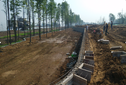 近日,集团交通公司负责施工的武青堤堤防江滩综合整治工程(一期)已进入收尾阶段,现场仅剩自嵌式挡土墙的压顶梁施工与堤顶道路施工两部分。由于前段时间一直是阴雨天气,导致现场堤顶土路床需翻晒一段时间后才能进行堤顶道路的施工,所以现阶段项目部把主要精力全部集中在自嵌式挡土墙的压顶梁的施工。一期工程里面自嵌式挡土墙全长760米,其中包括底标高为24米的与底标高为27米的两排挡土墙各380米,项目部根据现场实际决定先施工27米的自嵌式挡土墙压顶梁。压顶梁是将整个自嵌式挡土墙砌块最上一层连成一个整体,并留有预埋钢板与上部栏杆扶手相连接的钢筋砼结构。它是由直径6毫米、10毫米、14毫米钢筋以及预埋钢板组成,并采用C20砼进行浇筑。施工技术要点在施工前已由技术负责人给现场施工管理人员进行了详细的技术交底,要求大家从施工过程中进行控制、把关,保质保量的做好每一道工序。本次自嵌式挡土墙压顶梁开始施工,为后续稳步推进工程节点奠定了基础。