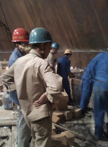 在环形风道砌筑过程中,项目部对耐火砖进行测量、分组,将正负公差的砖分类,合理调配,以确保砌筑质量。砌筑过程中遇到环形风道出口及环形风道过顶部位,出口拱顶花瓣砖与拱顶弧度不符,过顶通风孔组合砖与设计不符等困难,项目部积极与建设单位、设计单位、监理单位共同协商,将以上部位砖全部加工改型、重新组装,大大增加了施工难度。经全体员工的共同努力,日夜奋战,确保了工程质量与进度,其砌筑质量一次通过四方联合验收,砖缝、弧度、标高、平整度、胀缝全部达到要求。