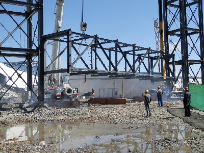 8月26日,集团机电青海江仓煤矿项目主井井口转载煤仓至筛分车间段输煤通廊钢构桁架第一榀完成吊装。