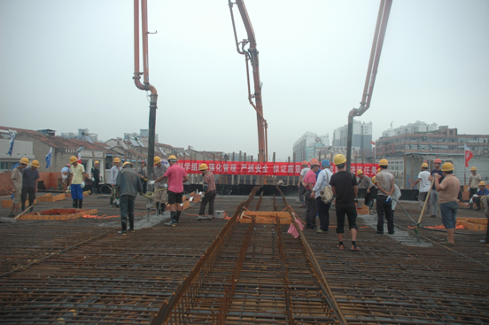 长丰大道二标五联联箱梁浇筑是集团交通公司长丰项目部劳务分包首联箱梁,该联为120米,分四跨组成,每跨30米,使用钢筋537吨,混凝土为2260方。在施工中,项目部对此联部署周密、安排紧凑、步步紧扣,对于重点部位、关键环节,不断优化施工方案,合理安排施工计划,确定节点目标,将施工任务落实明确,不畏天气严热,战高温,斗酷暑、抢晴天。从支架搭设到浇筑用了两个月的时间,保证了工期,实现了8月底砼浇筑这一既定目标。