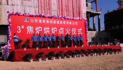 3#焦炉工程于2013年11月1日开工,在集团上海公司参战员工艰苦努力下,实现了预定工期,具备了烘炉条件。集团上海公司副经理孙仕斌出席点火仪式并致辞,山东潍焦集团薛城能源有限公司总经理王读福下达点火令。