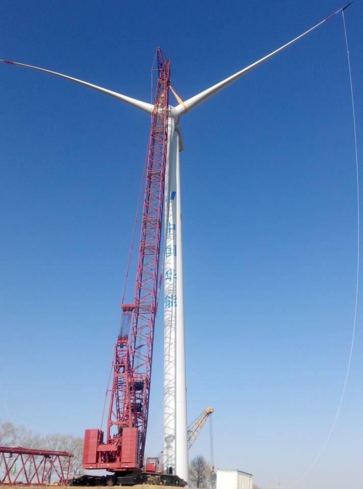 内蒙古赤峰风电吊装项目位于内蒙古赤峰市克什克腾旗书声乡东南部,由中国华能集团投资兴建。场址海拔高度在900至1600米左右,地形多为荒地、山地。集团机械化公司650吨履带吊采用84米主臂加12米固定副臂的风电专用工况,负责该项目12台单机容量为2兆瓦的风机吊、安装工作。吊装的单机风机机舱及吊具重达100吨,叶片长52米。该工程完工后,将承担内蒙古部分片区的电力输送,对降低成本、减少空气污染、提高能源利用效率起着重要作用。