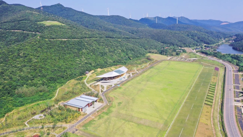 飞行大楼作为国内首个以“滑翔伞”为主题建造的大楼,总建筑面积约7000平方米,地上三层总建筑高度23.25米。拥有滑翔基地服务配套、飞行器材展览展示、飞行员接待、住宿、室内飞行教学、小型会议等主要功能;停机库总建筑面积约2500平方米,总建筑高度为9.05米,主要为飞行器材提供停放、维修、保养等服务;室外景观绿化及配套工程包括南北共596个停车位、飞行跑道、飞行小坡、景观河、观景台以及配套绿化等。