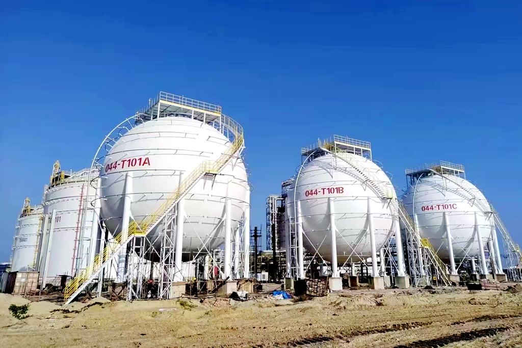 12月11日,中国一冶科工公司承接的东华能源(茂名)有限公司烷烃资源综合利用项目一期3台3000立方米丙烷球罐、1台1000立方米仪表空气缓冲球罐项目完工。