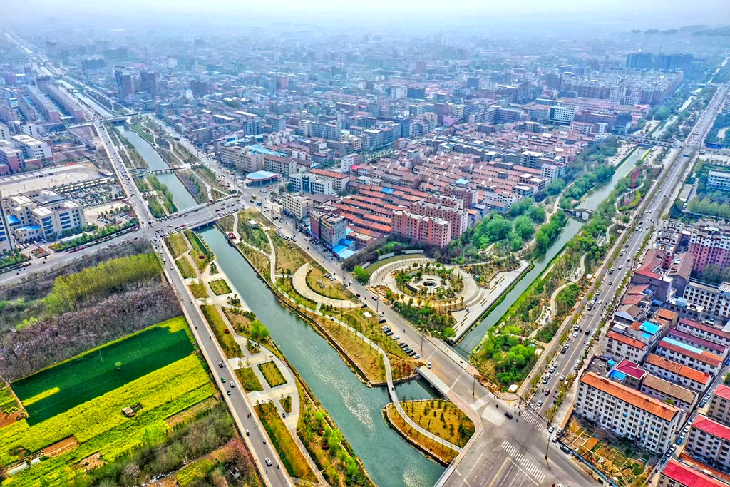 该项目作为河南省重点项目,是郸城县最大的民生工程。工程面积194.8万平方米,水系长度23.93千米,由城市休闲、人文历史、田园风光、健身运动、自然防护五大主题组成,三河一沟一渠首尾互通,环环相连,构成了城市环形水系的壮丽画卷。为了治理洺河,项目团队通过修建截污管道,将流到河道的污水截流,排往污水处理厂,再对受污染的河道进行治理,清除河道淤泥,修建河道驳岸,引流黑河水对河流进行补水循环,再种植水生植物、放养鱼类,让河水流动起来。
