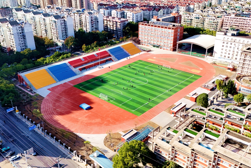 该项目位于武汉市第一中学校园内,总建筑面积约1.83万平方米,主要建设可提供442个车位、146个充电桩的地下停车场,以及可容纳2300人的综合体育看台,7500平方米的田径运动场。项目的建成,有效缓解学校及周边居民停车难、充电难的问题,同时设置专用的学生接送中心,保障学生上下学接送安全。运动场也为全校师生提供优质的体育运动场所。