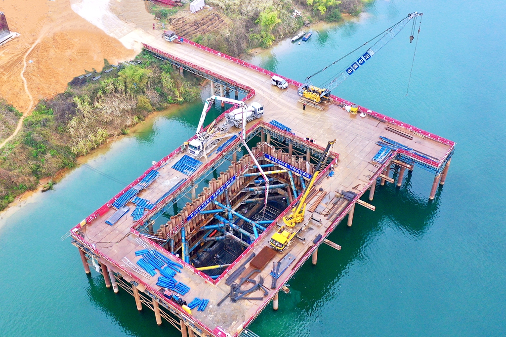3月13日,中国一冶交通分公司承建的柳州过境高速公路(罗城经柳城至鹿寨段)项目融江特大桥主桥水中墩首节混凝土完成浇筑,标志着该桥由水下基础施工正式转入下部结构施工阶段。
