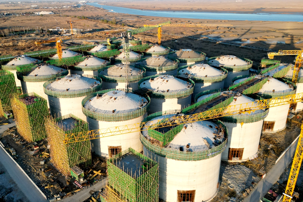 11月11日,中国一冶国际分公司承建的中央储备粮丹东直属库有限公司仓储土建施工项目20座浅圆仓主体结构封顶。