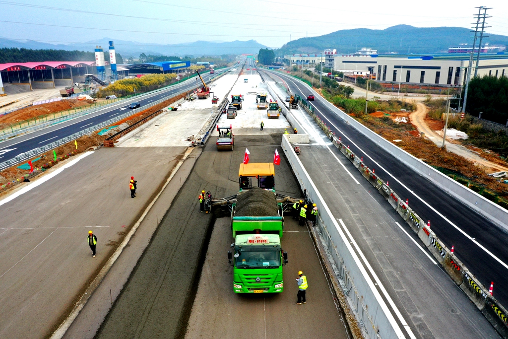 1月15日,由中国一冶交通分公司承建的罗鹿高速鹿寨北枢纽主线,顺利完成级配碎石垫层摊铺与验收,进入水稳摊铺施工阶段。
