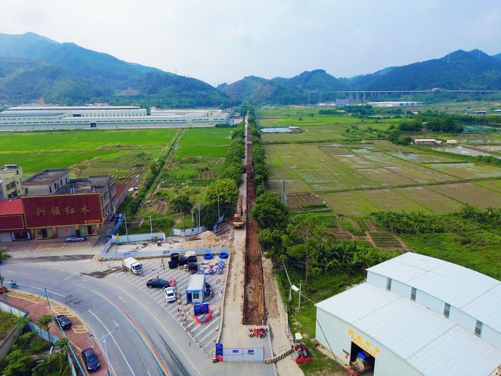 项目位于广东省肇庆市高要区,为重要民生供水工程。管道起于大湾镇环镇路与红木街交叉口,沿X459自北向南敷设,终点接至南岸街道要南路路口,通过预留管道衔接二期国道324段工程,最终接入S272现状DN1000给水管。全长约7.5公里,建设内容包括路面拆除与修复、沟槽支护开挖、管道安装及附属构筑物施工。