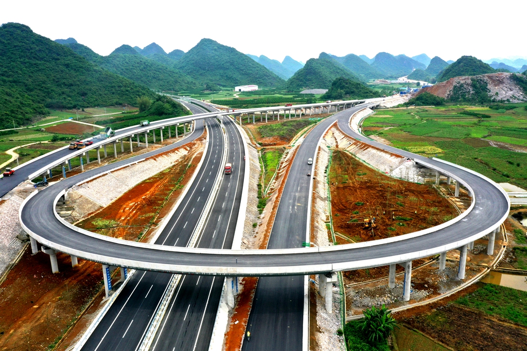 罗鹿高速公路全长97.497公里,途经河池市罗城仫佬族自治县、柳州市柳城县、鹿寨县,全线共设8处互通立交。本次施工的平山南枢纽互通位于鹿寨县平山镇,为Y形枢纽立交,工程总长2513米,共设置4条匝道,涵盖桥梁、路基、路面等多项施工内容,是罗鹿高速与永柳高速实现交通转换的核心节点,也是项目关键控制性交通工程。该互通建成投用后,将高效串联区域高速路网,打通两地交通快速转换通道,进一步优化柳州境内高速公路交通布局。
