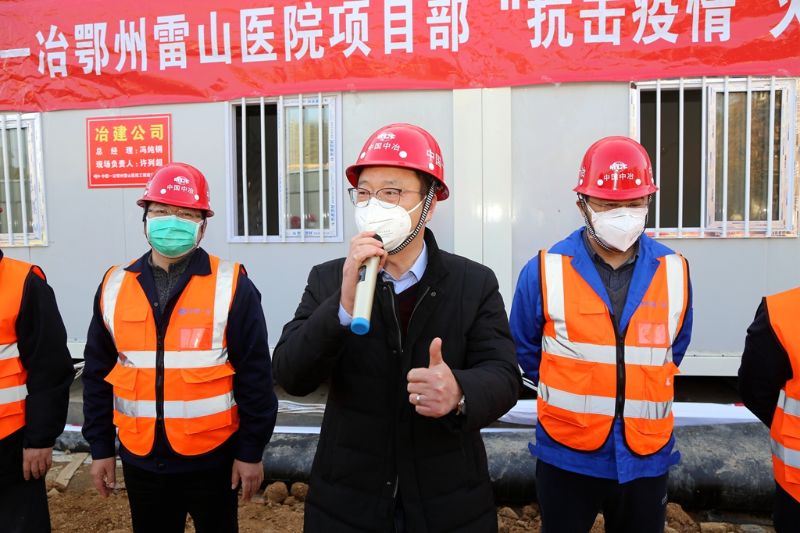 汪诚代表集团党委向奋战在雷山医院建设一线的全体同志表示感谢。他指出,面对非常时期的非常任务,广大党员同志身先士卒、带头冲锋,为决胜疫情阻击战做出了重要贡献,也树立了中国一冶讲责任、有担当的良好形象。