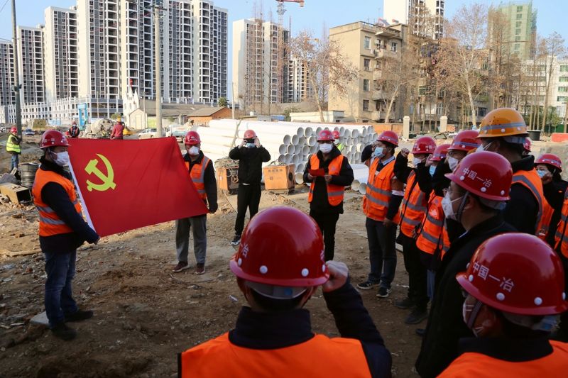 面对严峻疫情,中国一冶启动战时机制、发出战时动员,指挥部临时党委充分发挥战斗堡垒作用,党员突击队冲锋在前,责任在肩,让党旗在抗疫一线高高飘扬。