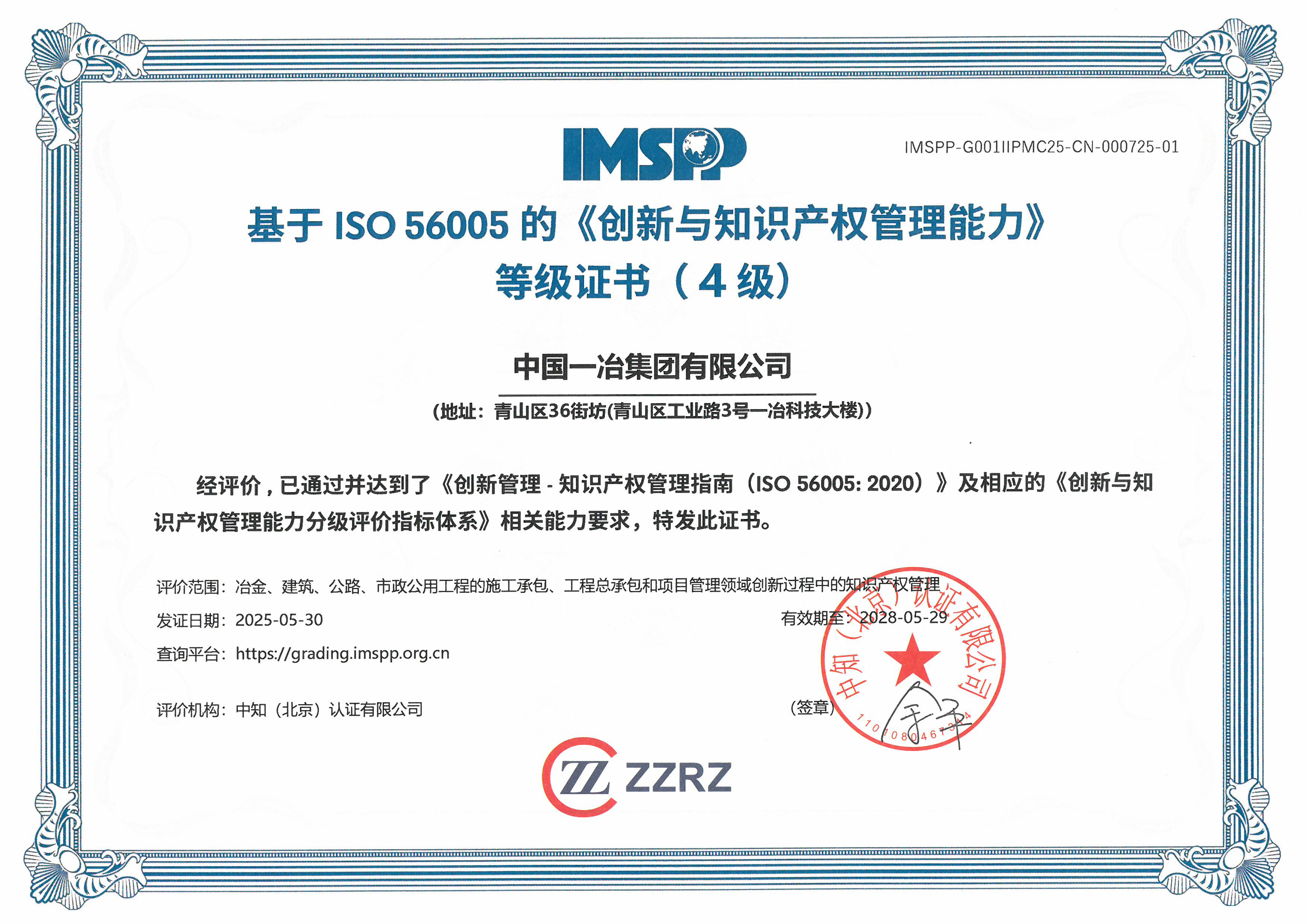 5月30日,中国一冶成功获得中知(北京)认证有限公司颁发的基于ISO 56005的《创新与知识产权管理能力》四级证书,成为湖北省和中国中冶首家获此荣誉的单位。